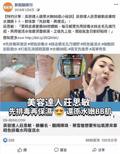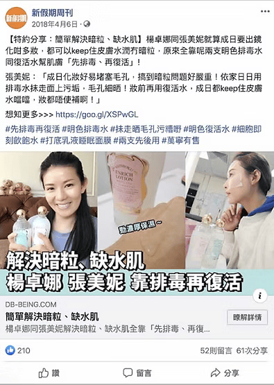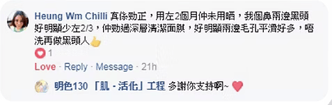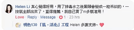 以明色排毒水喺肌膚上一抹,立即帶出大量污垢。每晚持續使用,毛孔明顯收細,連鼻上黑頭都可以輕易推出,肌膚回復白淨光滑。
